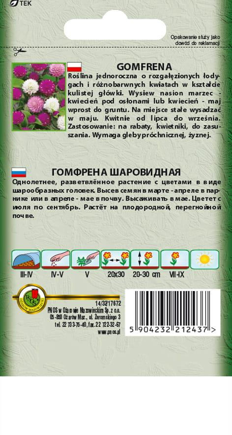 On the back of each package there is information about the description of the plant, the weight or quantity of seeds, the sowing date of the seeds from a given batch and tips on growing the plant.